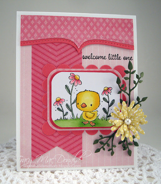 Tracy, what an adorable baby card, and yes, a girl!! So cute, and I love the image and your beautiful flower! And woohoo for you for doing the food! Such a precious gift to the mom-to-be!! Hugs!